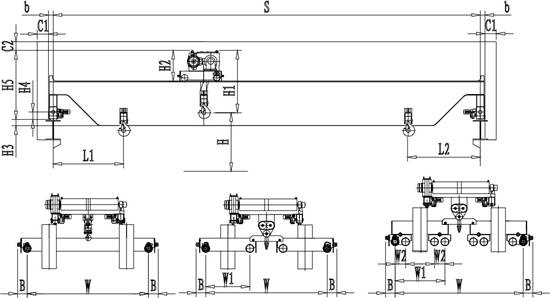 欧式双梁桥式起重机是基于模块化设计理论和现代计算机技术,采用新材料,新技术完成了具有高度共性,智能化和高科技的新型桥式起重机。