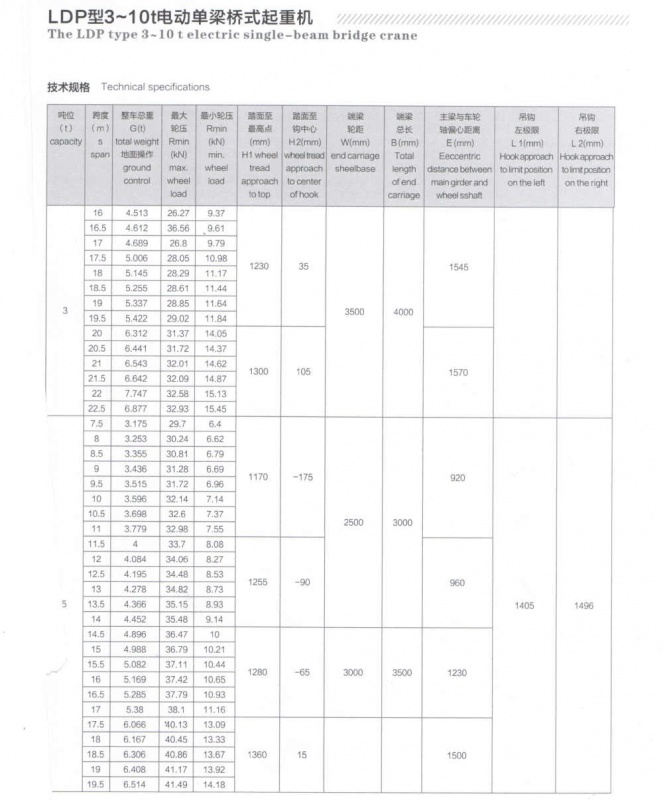 电动单梁起重机是一种轻小起重设备,在工字钢轨道上运行,有电动和手动之分,重物挂在其上,比较简单,应用较多。定义主要由电动葫芦、金属结构、大车运行机构、馈电装置和电气装置组成。型号根据标准号:JB/T1306-94中电动单梁起重机的定义:LD型电动单梁起重机是指:电...