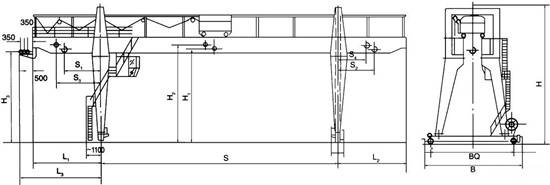 门式起重机的跨度是影响起重机自身质量的重要因素。选择中,在满足设备使用条件和符合跨度系列标准的前提下,应尽量减少跨度。